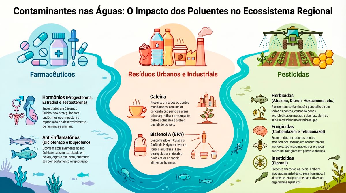 Impulsionados pelo alto consumo e descarte inadequado, medicamentos, hormônios sintéticos, produtos de cuidados pessoais, assim como pesticidas, fármacos de uso veterinário e substâncias industriais representam riscos crescentes para os ecossistemas aquáticos do Pantanal.