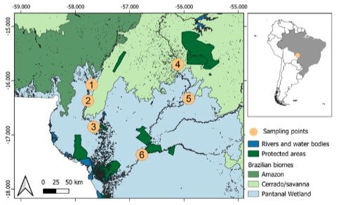 A equipe selecionou regiões de transição na parte ocidental de Mato Grosso, contendo fragmentos de Floresta Amazônica, Cerrado e Pantanal. Esses locais ficam distribuídos nos municípios de Cáceres, Cuiabá, Barão do Melgaço e Poconé. O risco ecológico foi medido segundo parâmetros adotados internacionalmente para cada composto.