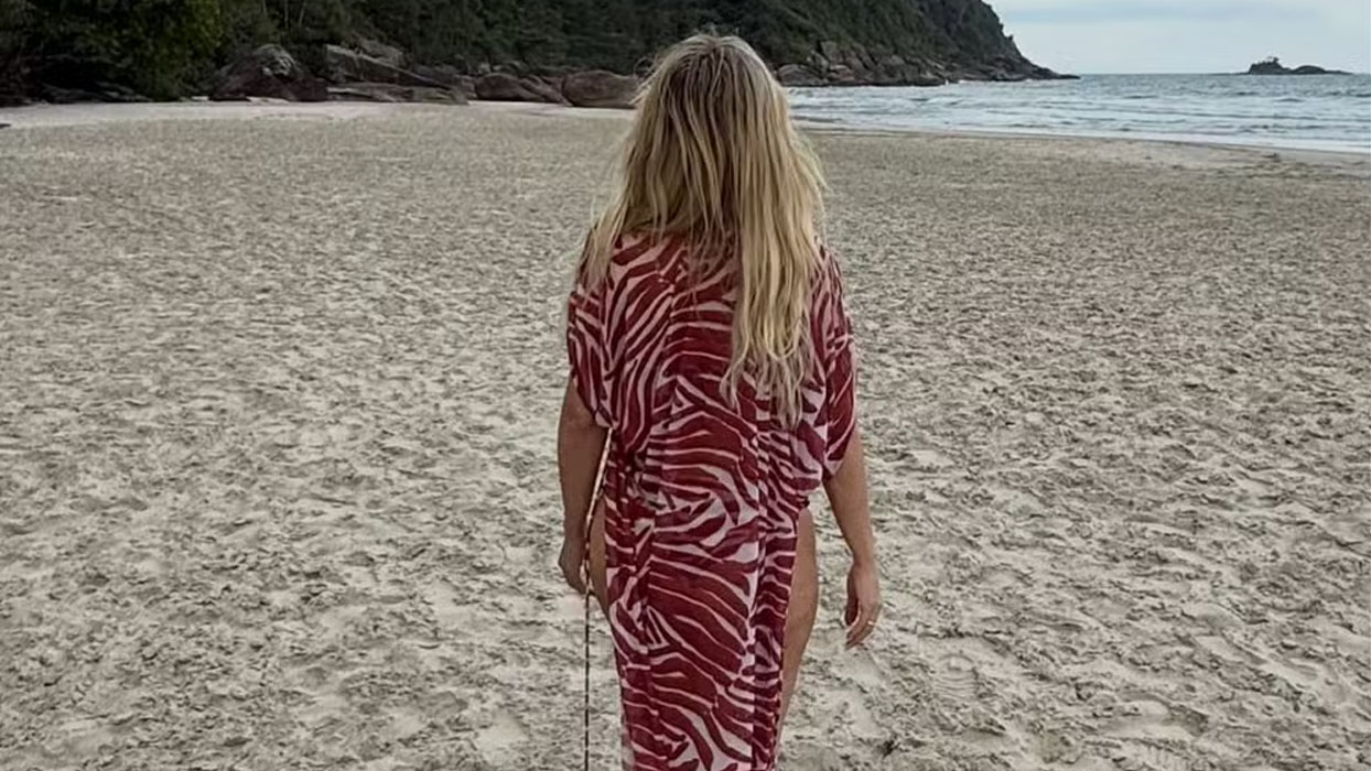 Eliana, de 53 anos, optou por passar o Carnaval 2026 longe da folia. Nesta terça-feira (17), a apresentadora publicou fotos em uma praia deserta, onde aparece usando biquíni vinho e branco, além de uma saída de praia no mesmo tom, apostando em um clima de descanso e tranquilidade.