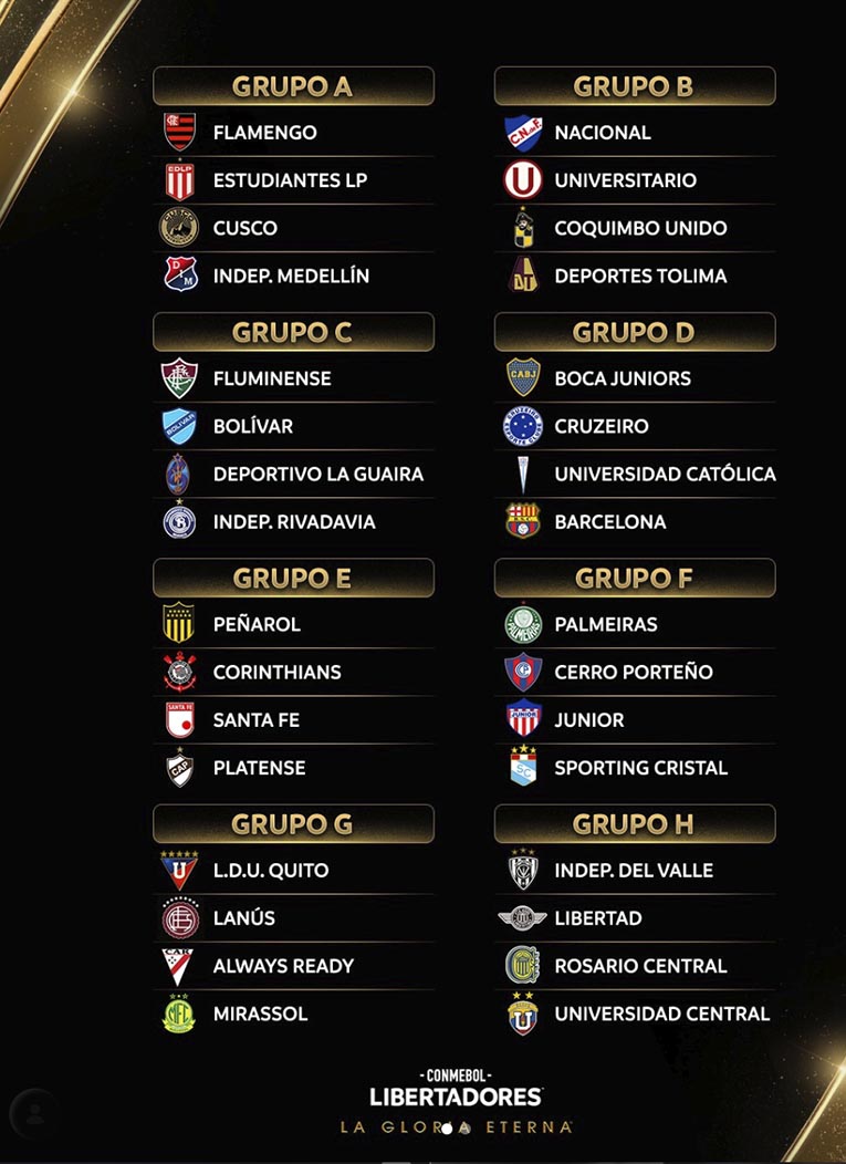 A fase de grupos da Libertadores está agendada para ocorrer entre os dias 7 de abril e 28 de maio. Ao final desta etapa, os dois melhores colocados de cada grupo garantirão vaga nas oitavas de final, cujo sorteio está previsto para a primeira semana de junho. A partir de agora, os clubes intensificam a preparação para os confrontos que prometem eletrizar o continente.