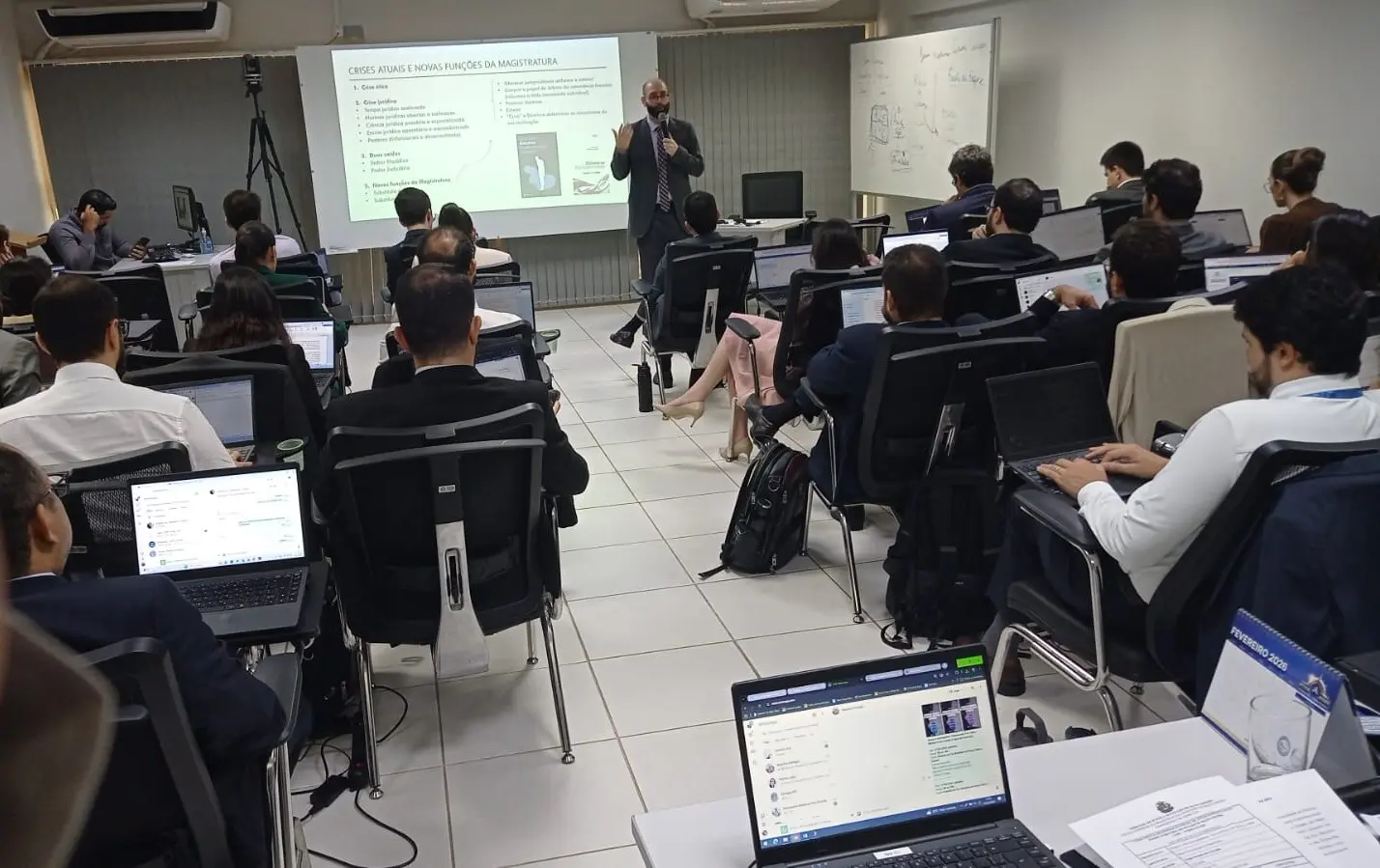 Já nesta sexta-feira (13 de março), o formador foi o professor Felipe Rodolfo de Carvalho, da Universidade Federal de Mato Grosso, que ministrou a aula de “Filosofia do Direito e Sociologia Jurídica”. Segundo ele, os conhecimentos dessas áreas são fundamentais para ampliar a visão crítica dos futuros magistrados. “Os conhecimentos filosóficos e sociológicos fomentam no juiz, e no jurista de modo geral, uma perspectiva crítica acerca das suas próprias funções”, afirmou. Ele destacou que muitos profissionais chegam à carreira sem compreender plenamente os pressupostos e as repercussões de sua atuação.