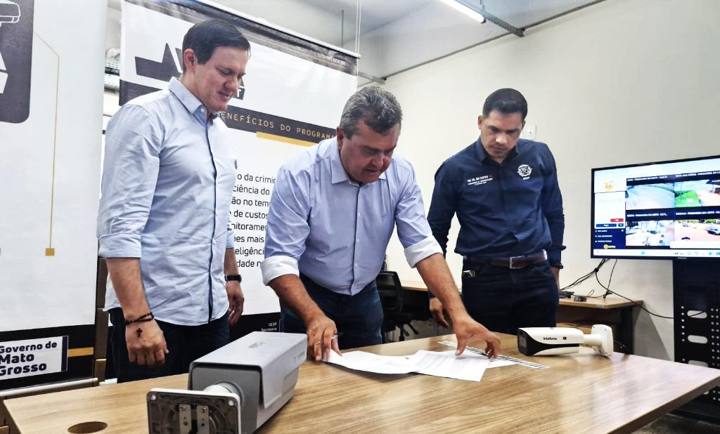 Em ato realizado na sede da Secretaria de Estado de Segurança Pública (Sesp-MT), em Cuiabá, o secretário coronel César Roveri, fez a entrega das 68 novas câmeras ao prefeito Sérgio Machnic. Essa ampliação possibilita ao município fortalecer a cobertura em pontos estratégicos de avenidas, ruas, praças e outros ambientes com emprego de equipamentos de alta resolução, dotado de tecnologia de leitura de placas veiculares e outros recursos.