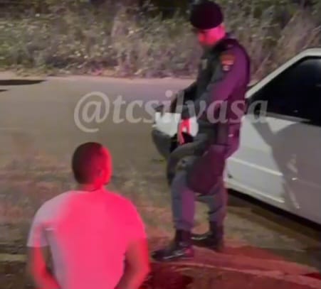 Abandonou o veículo e tentou fugir a pé em direção ao matagal, mas foi contido, imobilizado e algemado.