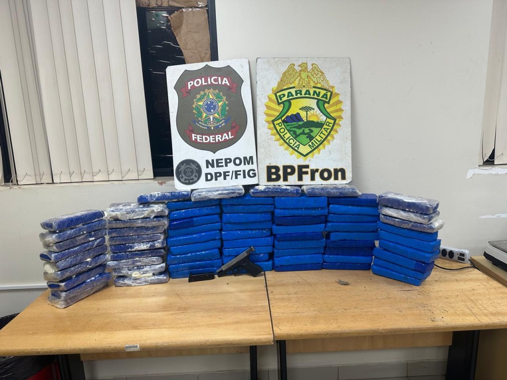 O entorpecente e o simulacro foram apreendidos e encaminhados à Delegacia da Polícia Federal em Foz do Iguaçu, onde foram adotadas as providências legais cabíveis.