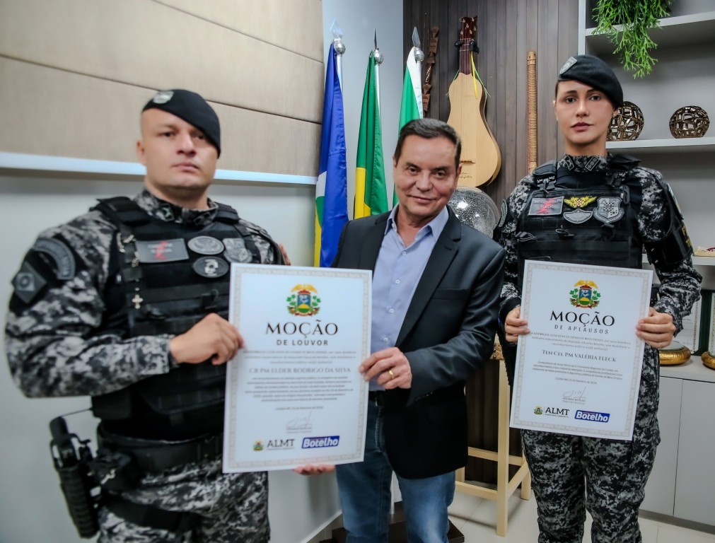 Além do reconhecimento ao ato de bravura, a Assembleia Legislativa também concedeu a Moção de Aplauso nº 267/26 à Tenente-Coronel Valéria Fleck, comandante da Força Tática do 1º Comando Regional de Cuiabá, em reconhecimento à sua trajetória profissional e aos relevantes serviços prestados à segurança pública do Estado.