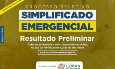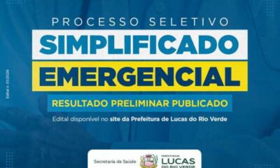 A Prefeitura de Lucas do Rio Verde divulgou na manhã desta segunda-feira (23), o resultado preliminar do Processo Seletivo Emergencial Simplificado, Edital n. 002/2026. Os candidatos...