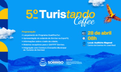Sorriso realiza, no próximo dia 28 de abril, às 08h, o 5º Turistando Coffee, no Auditório Magessi, localizado no Centro de Eventos Ari José Riedi. A...