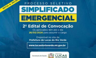 Já está disponível no site da Prefeitura de Lucas do Rio Verde, o segundo edital de convocação dos aprovados no Processo Seletivo Emergencial Simplificado (Edital n....